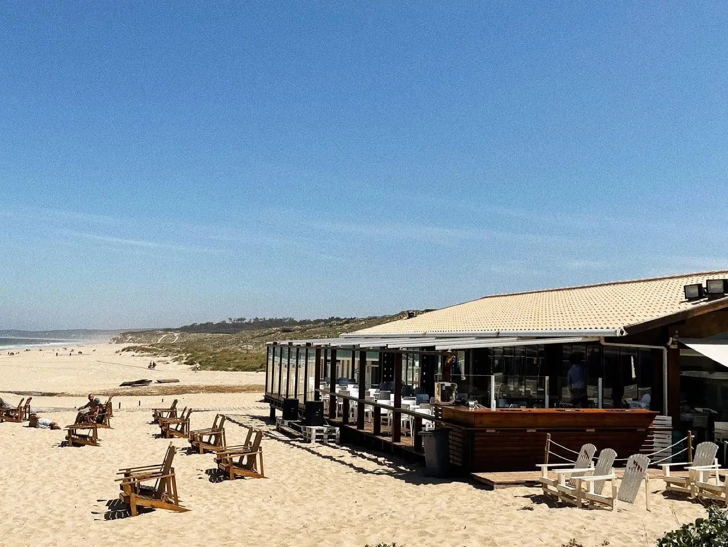 Peixe fresco Marisqueira Portuguesa O miradouro para o mar em plena praia do Moinho de Baixa e a esplanada na areia 40 para duas pessoas aprox.